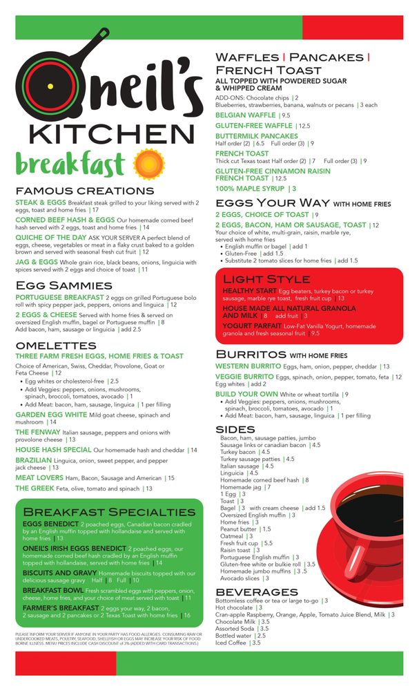 Oneil's Kitchen Menu